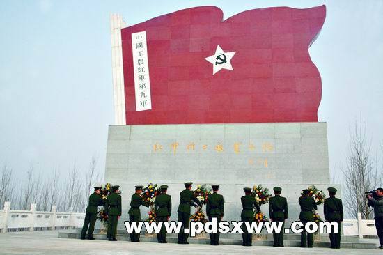 桐树庄村中国工农红军第九军纪念碑于2012年8月开工建设,11月竣工,12月举行揭碑仪式,占地面积约0.67公顷,投资100多万元。纪念碑由主体碑、基座、碑基平台、纪念碑广场4个部分组成。基座高1.930米,象征中国工农红军第九军1930年成立;主体碑高7.30米,象征工农红军第九军7月30日正式成立。碑基上是中央政治局原委员、中央军委原副主席张万年“红军将士永垂不朽”的题词。碑体为中国工农红军第九军军旗造型。
